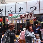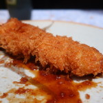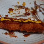 いちかわ - ヒレ串にソースとからしをかけた状態